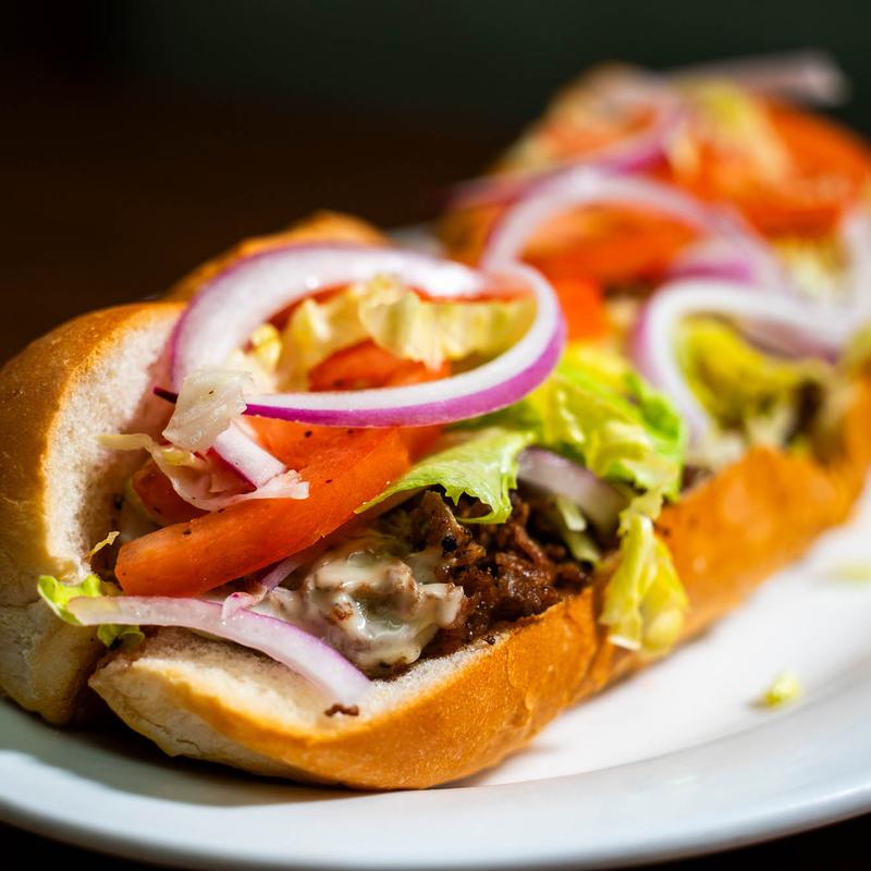Toasted with sautéed mushrooms, green peppers, fried onions, melted cheese and our own Italian dressing