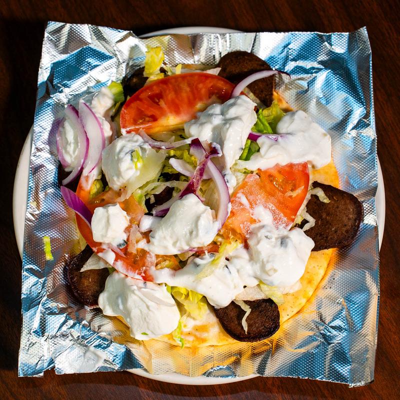Blended mixed lettuce, tomato, onions, black olives & Feta cheese